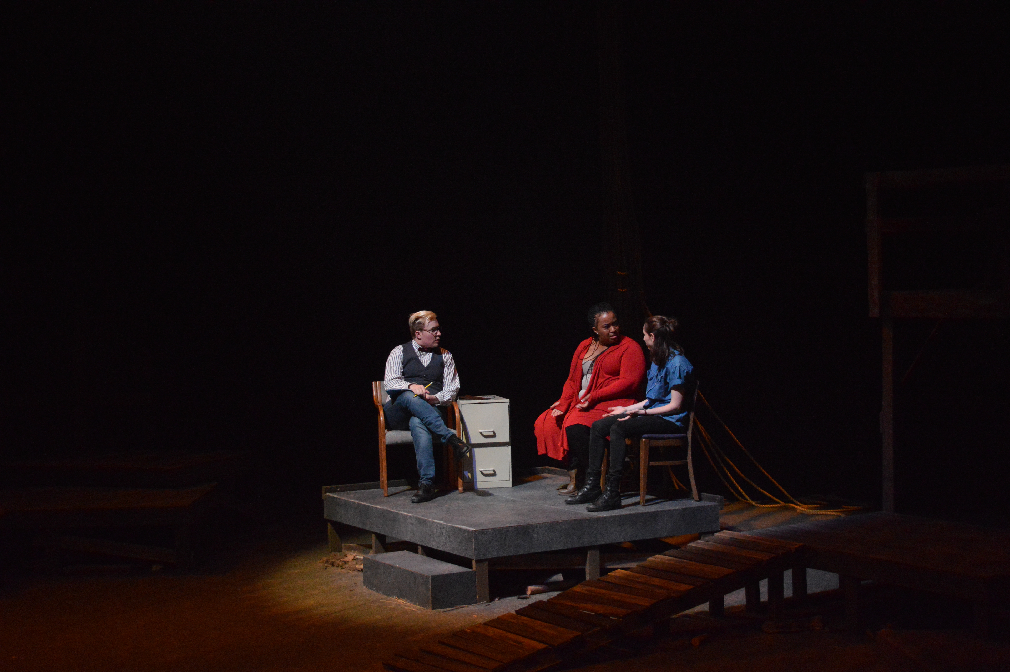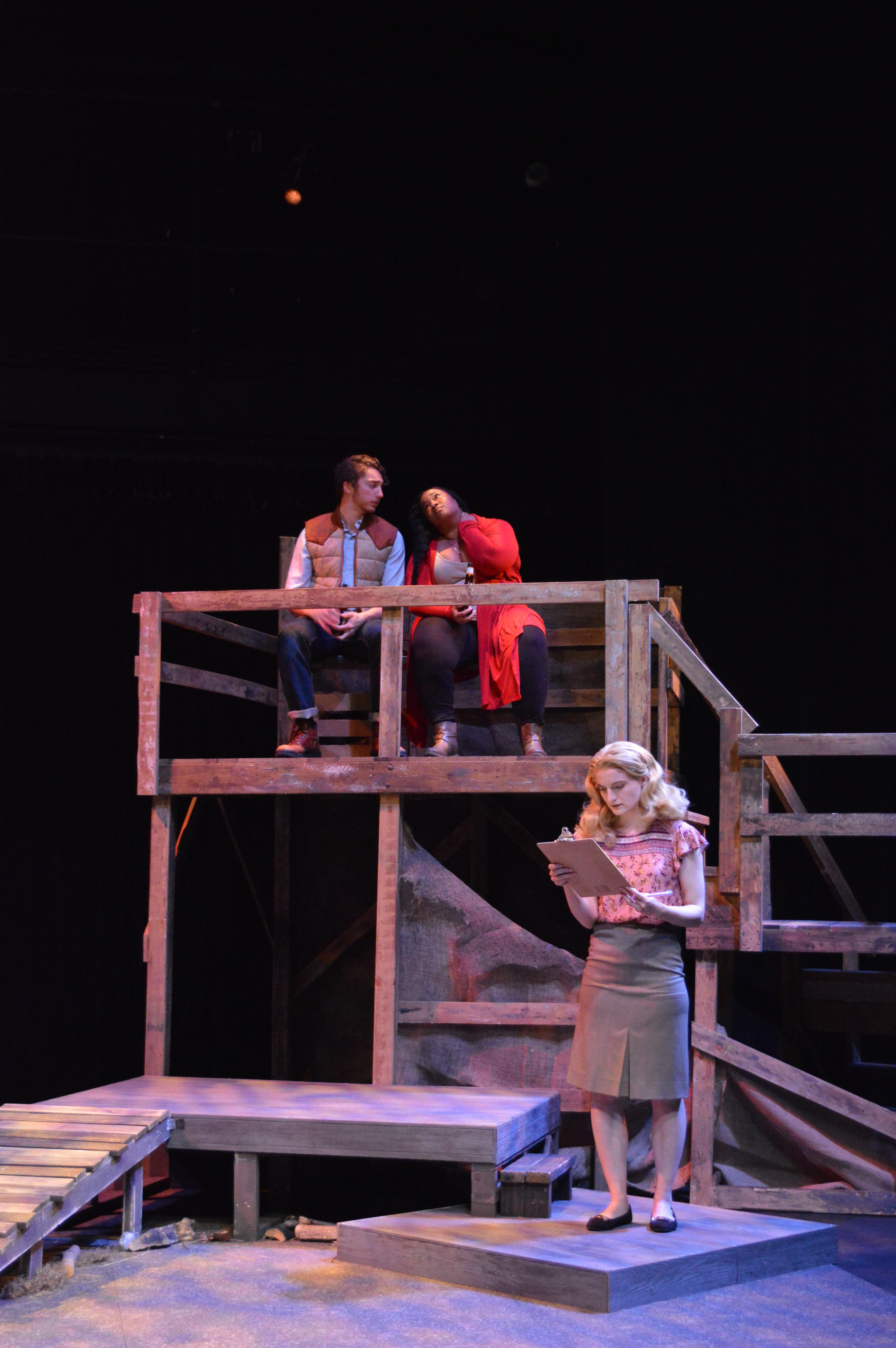 Playwright: Courtney Meaker Venue: David Thayer Theatre Date: May 2019 Director: Bo Frazier Stage Manager: Meg Sugden Dramaturg: Morgan Grambo Scenic Design: Jacob Sikorski Costume Design: Akeem Celestine Lighting Design: Kim Fain Sound Design: Fatima Tall Cast Sean: Vinnie Doud Patricia: Temyia Holcomb Cass: Britny Horton Director of Tourism (Lucy): Nicole Gabrione Bev: Liat Graf Dr. J: Ash Pierce Polly: Jivani Rodriguez Camille: Erica Toney Hank: Bries Vannon Rodrick: Steven Willis